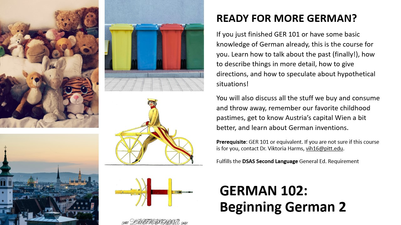 We are offering all our regular German language courses from German 101 to 202 (Beginning and Intermediate German) this fall.